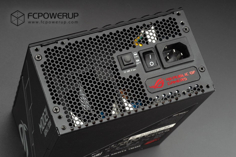 AC出风口设置了温控按钮,开关弹起On为“0 dB Fan”风扇停转功能,按下OFF则是关闭风扇停转功能,对于风扇温控的描述方面,华硕ROG THOR 1200P要优于海韵原厂的说明。