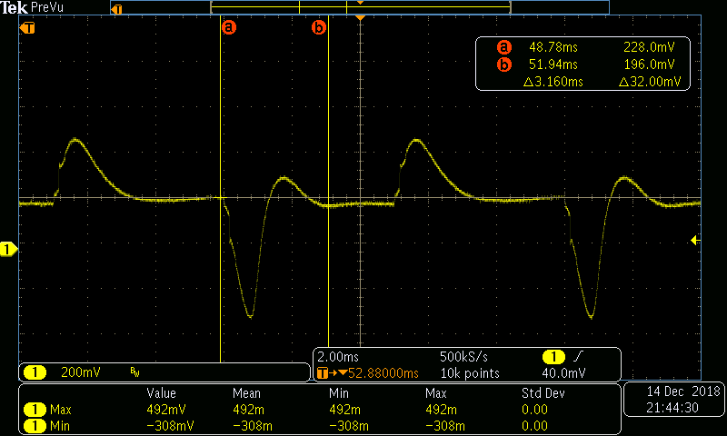 我们需要做的就是确保电源在瞬变发生过程中不触发OPP关机、不重启、不发生故障,测量到Vpk1和Vpk2两个上下冲电压幅值。