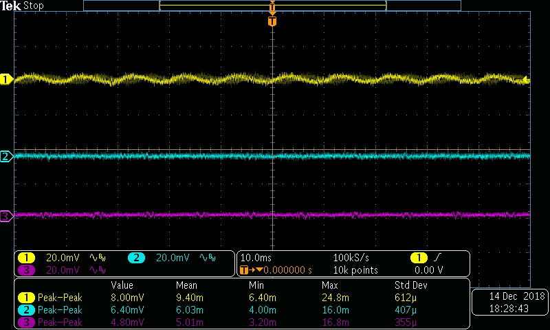 纹波和噪声(Ripple & Noise)是电源直流输中的交流成分,一部分可能是交流电经过整流稳压后仍然存在的交流成分,一部分则是电路晶体管本身所产生的开关纹波和噪声,如果用示波器观察就可以看到电压像水波纹一样波动,所以叫纹波。过高的纹波会干扰数字电路,影响电路工作的稳定性。