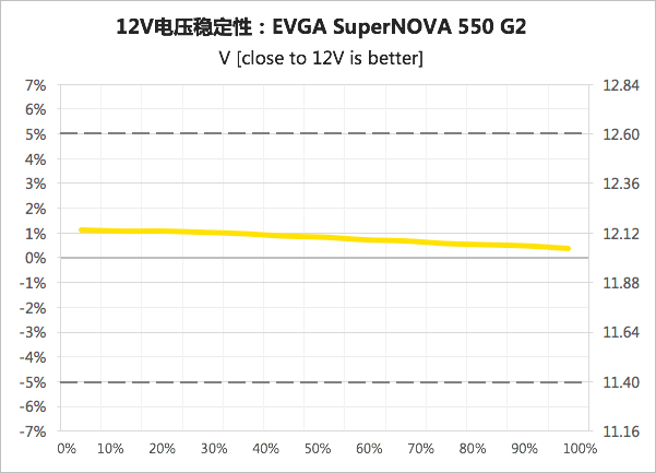 EVGA SuperNOVA 550 G2均衡负载的电压稳定性情况: