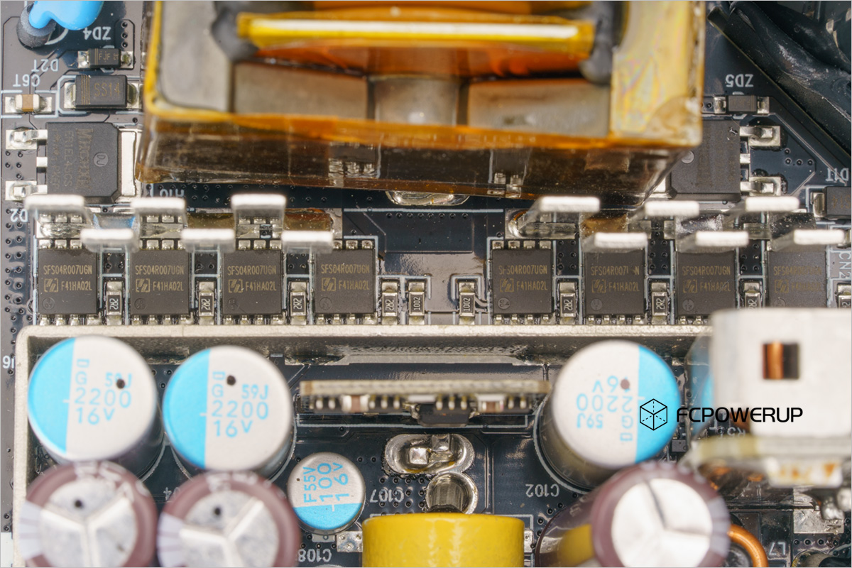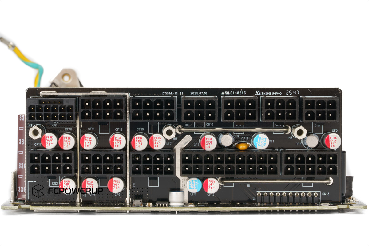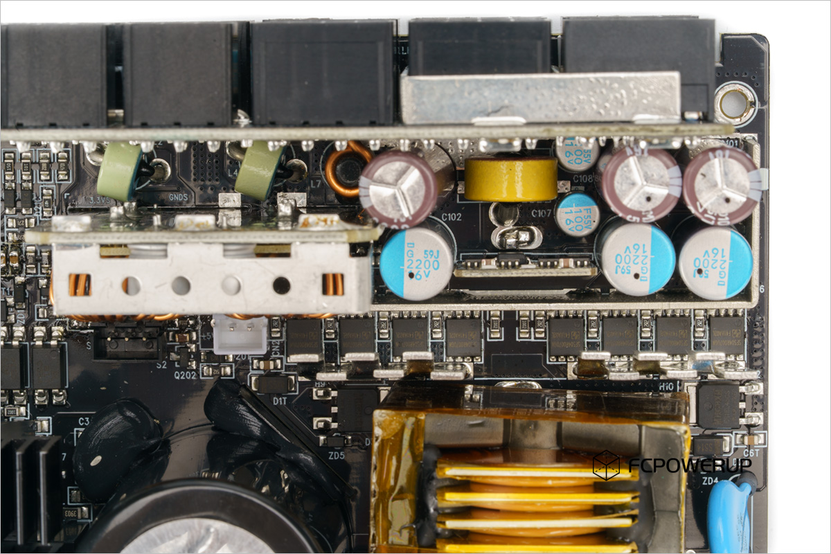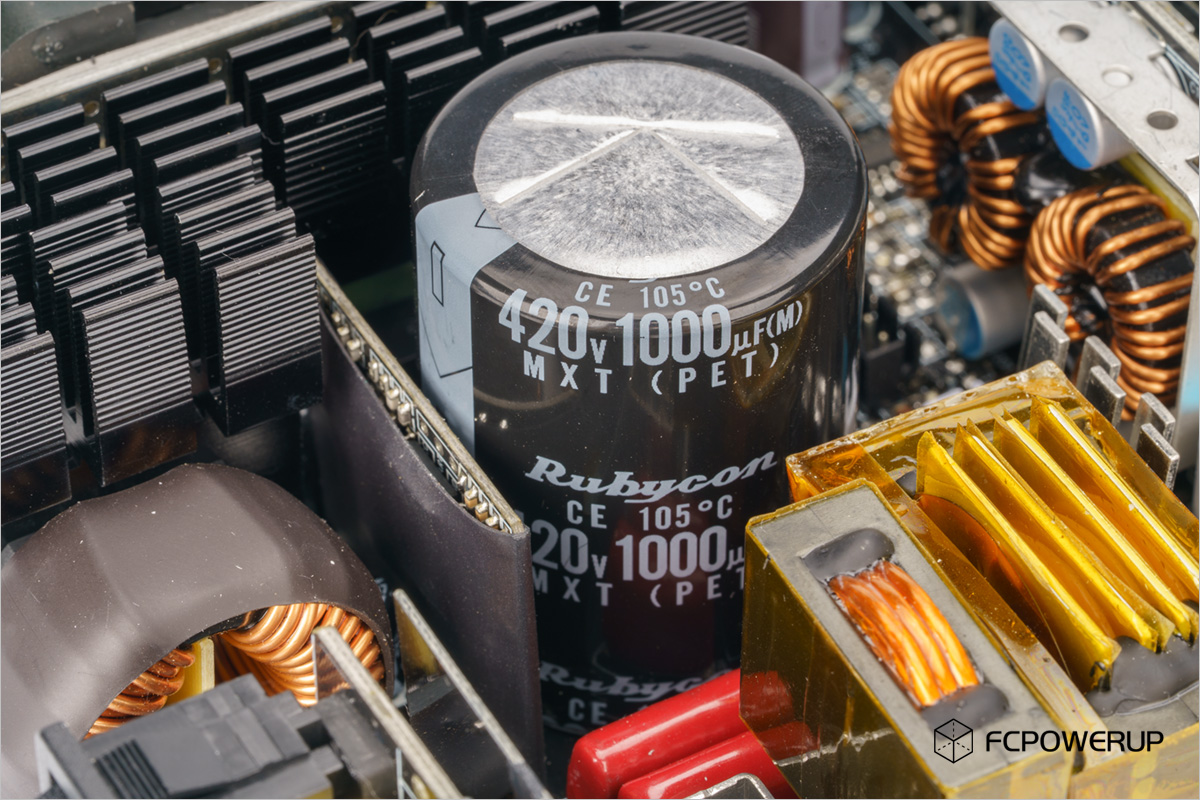 联力SX1200P的电容都为日系品牌的产品,其中主电容为红宝石Rubycon MXT系列高压电容,输出滤波电容有日本化工的W系列电解电容、日本化工的PSG、PSF固态电容、红宝石的电解电容以及FPCAP的5K系列固态电容。