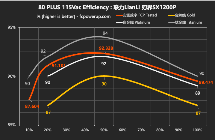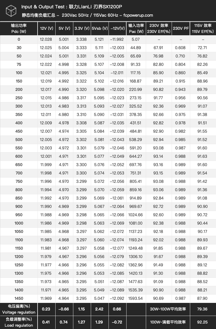 实测联力SX1200P的满载12V和3.3V纹波较好,5V属于中上水准。