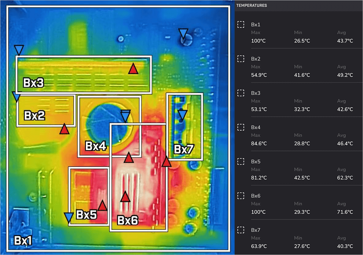 测试为满载1小时之后拍下热成像图。室温25℃。