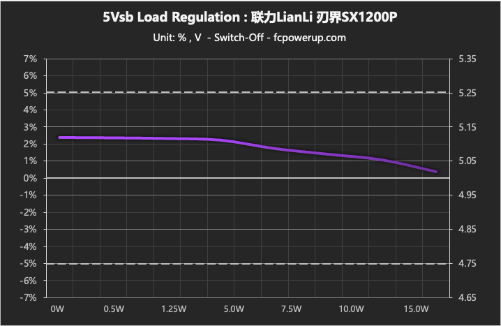 交叉负载我们使用旧版本的严格的标准,电压偏离必须在Intel ATX12V规范规定的±5%的范围内,越接近0%越好。