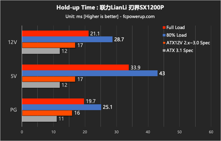 的保持时间测试结果如下表,ATX 3.0、ATX3.1标准的要求都能满足。