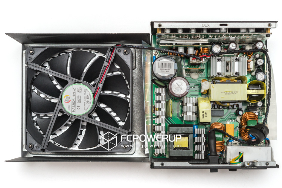 散热风扇采用了鸿华HongHua的HA13525L12F-Z,规格135mm,12V,0.22A,1600RPM,FDB流体动态轴承,寿命50000小时@40℃。比起PRIEM 750 Titanium使用的转速还低了200RPM,看来海韵对于风扇温控有了进一步的掌握。测试章节结合转速有详细的分析。